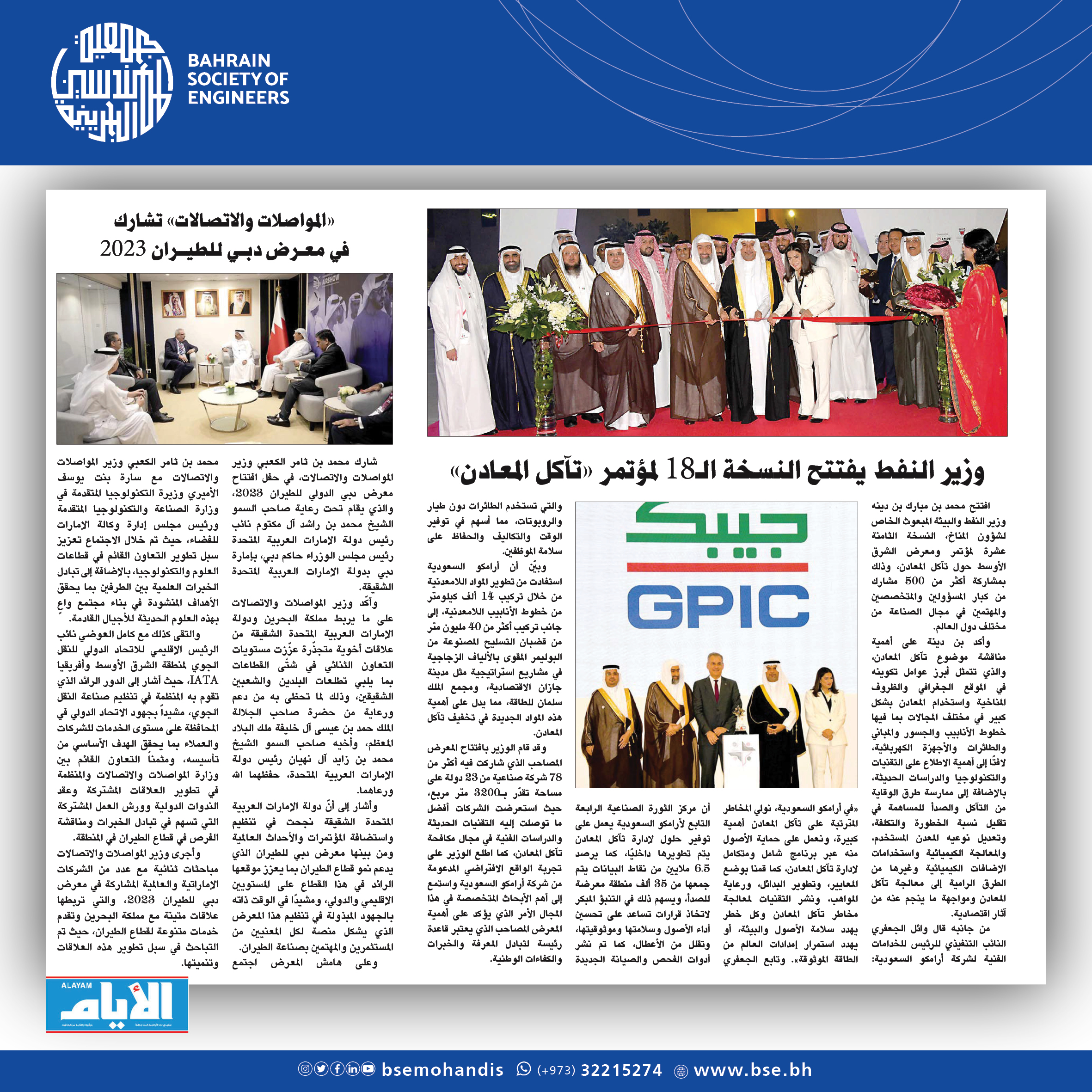 من جانبها أعربت الدكتورة رائدة العلوي رئيسة جمعية المهندسين البحرينية عن شكرها وتقديرها لسعادة الدكتور محمد بن مبارك بن دينه وزير النفط والبيئة المبعوث الخاص لشؤون المناخ على دعمه ومساندته لإنجاح هذه النسخة من سلسلة مؤتمرات ومعارض الشرق الأوسط حول تآكل المعادن، مشيرة إلى أن الجمعية تحتفل خلال هذه النسخة بالذكرى 45 عاماً على انطلاقته عام 1979م و الذي يعد واحداً من أكبر المؤتمرات الهندسية والمهنية المتخصصة في البلاد والمنطقة، معبرةً عن سعادتها بالشراكة مع وزارة النفط والبيئة وجمعية حماية المواد والأداء “AMPP” فرع الظهران بالمملكة العربية السعودية الشقيقة في تنظيم هذه النسخة من حيث مستوى المشاركة الفعالة والأوراق الفنية وورش العمل.
