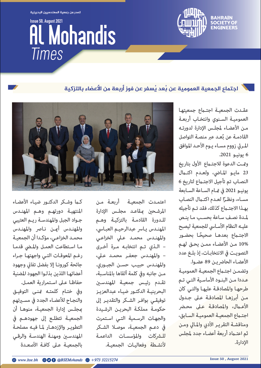جمعية مهنية تطوعية تعنى بشئون قطاع المهندسين في البحرين وترعى مصالحهم وتسعى لتطوير قدراتهم من خلال برامجها الفنية والاجتماعية.