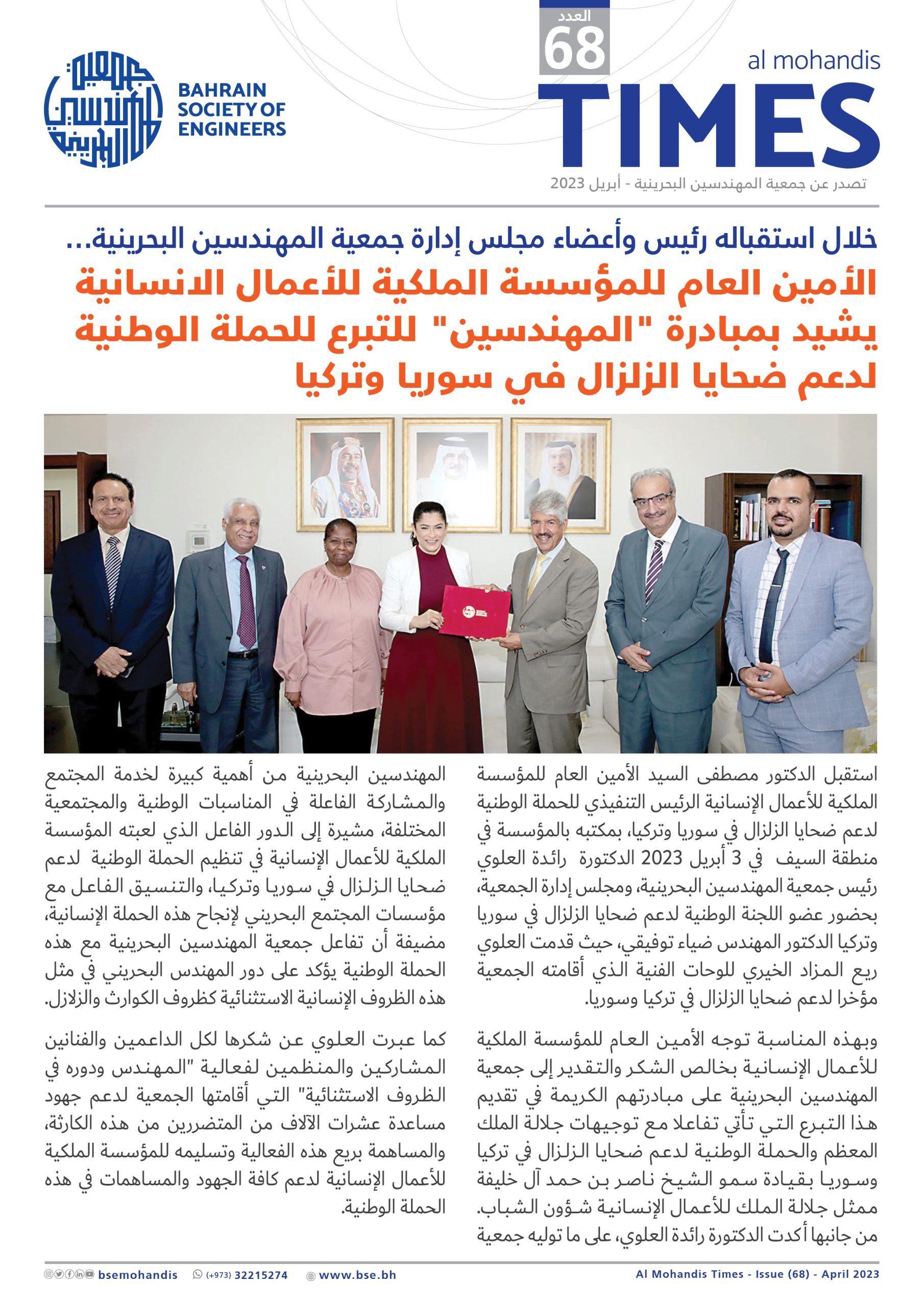 جمعية مهنية تطوعية تعنى بشئون قطاع المهندسين في البحرين وترعى مصالحهم وتسعى لتطوير قدراتهم من خلال برامجها الفنية والاجتماعية.