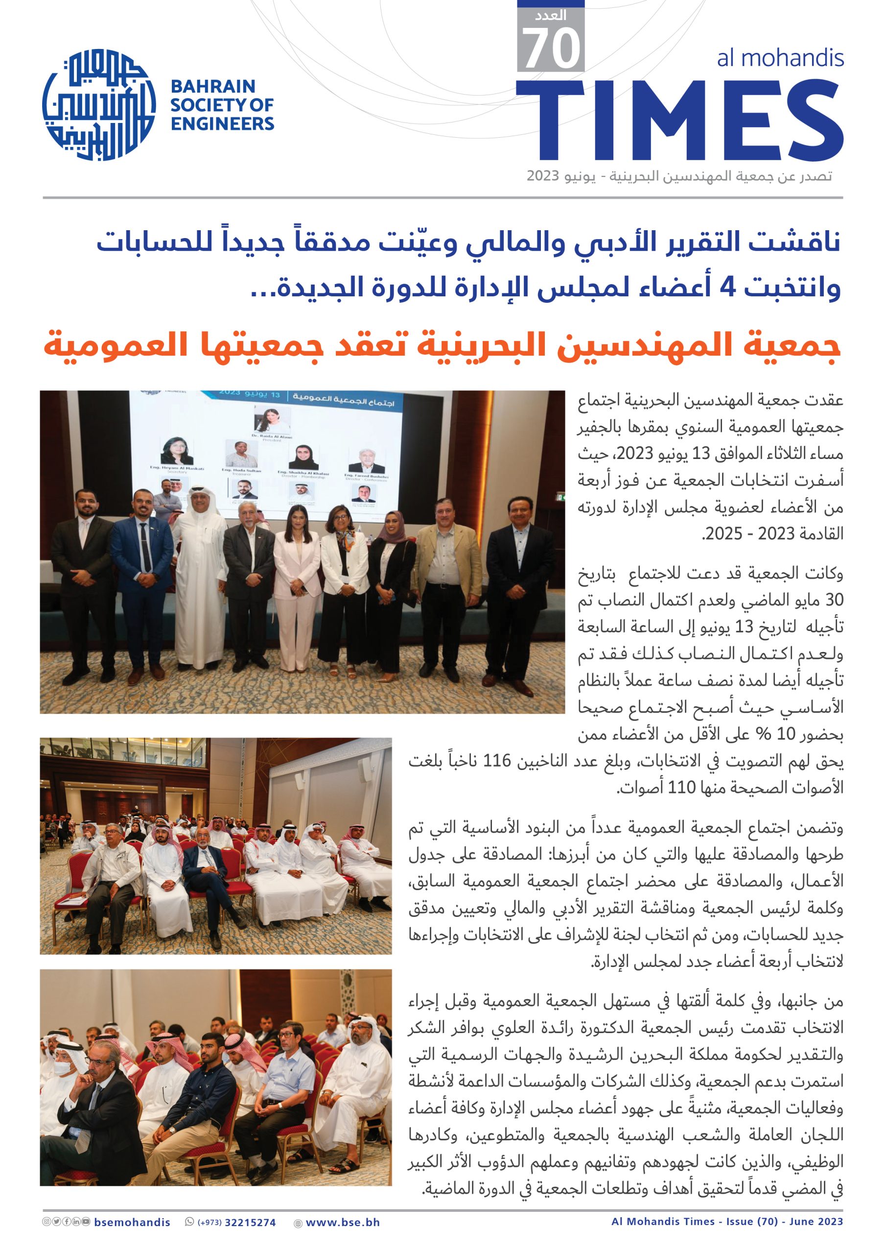 جمعية مهنية تطوعية تعنى بشئون قطاع المهندسين في البحرين وترعى مصالحهم وتسعى لتطوير قدراتهم من خلال برامجها الفنية والاجتماعية.