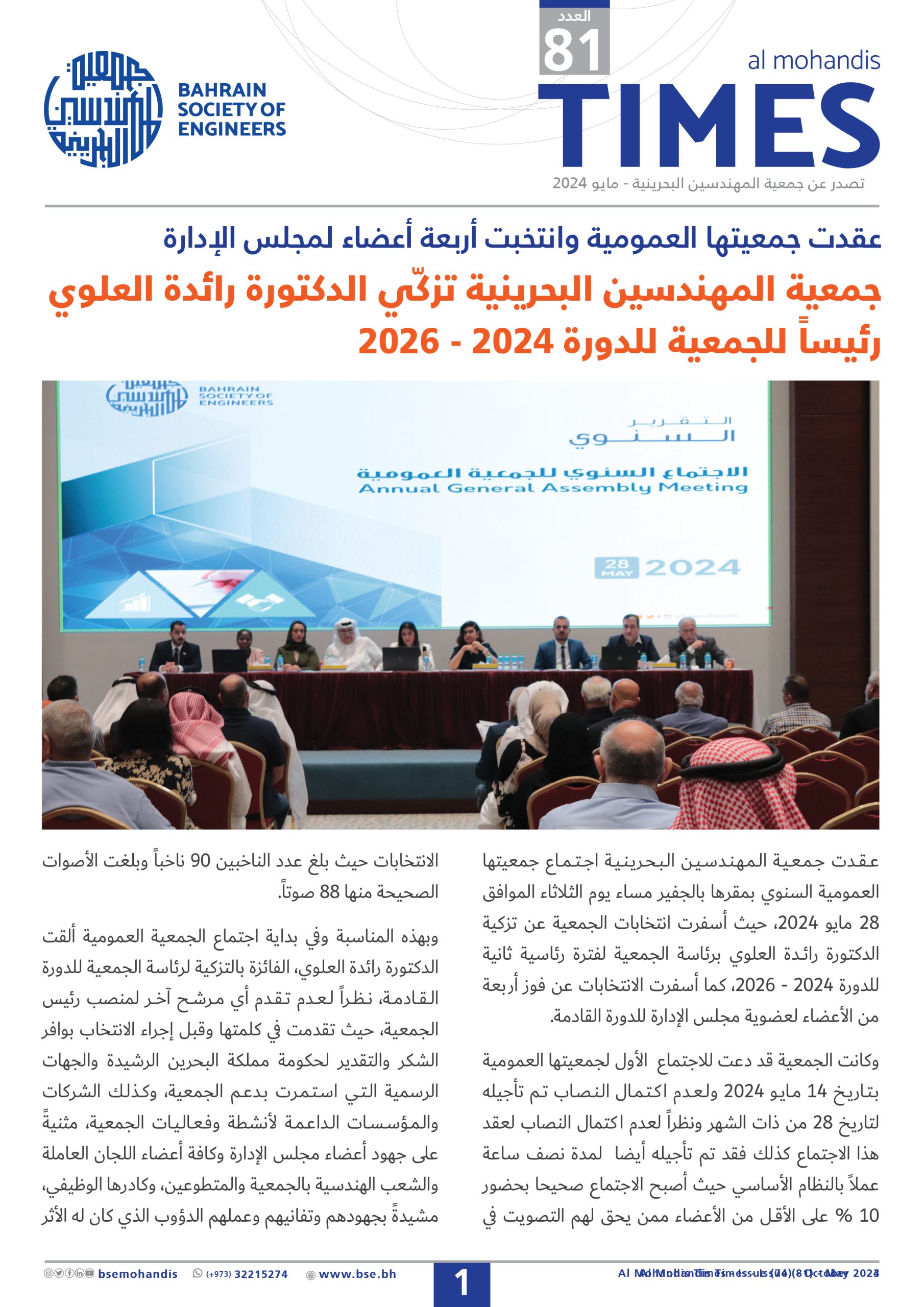 جمعية مهنية تطوعية تعنى بشئون قطاع المهندسين في البحرين وترعى مصالحهم وتسعى لتطوير قدراتهم من خلال برامجها الفنية والاجتماعية.