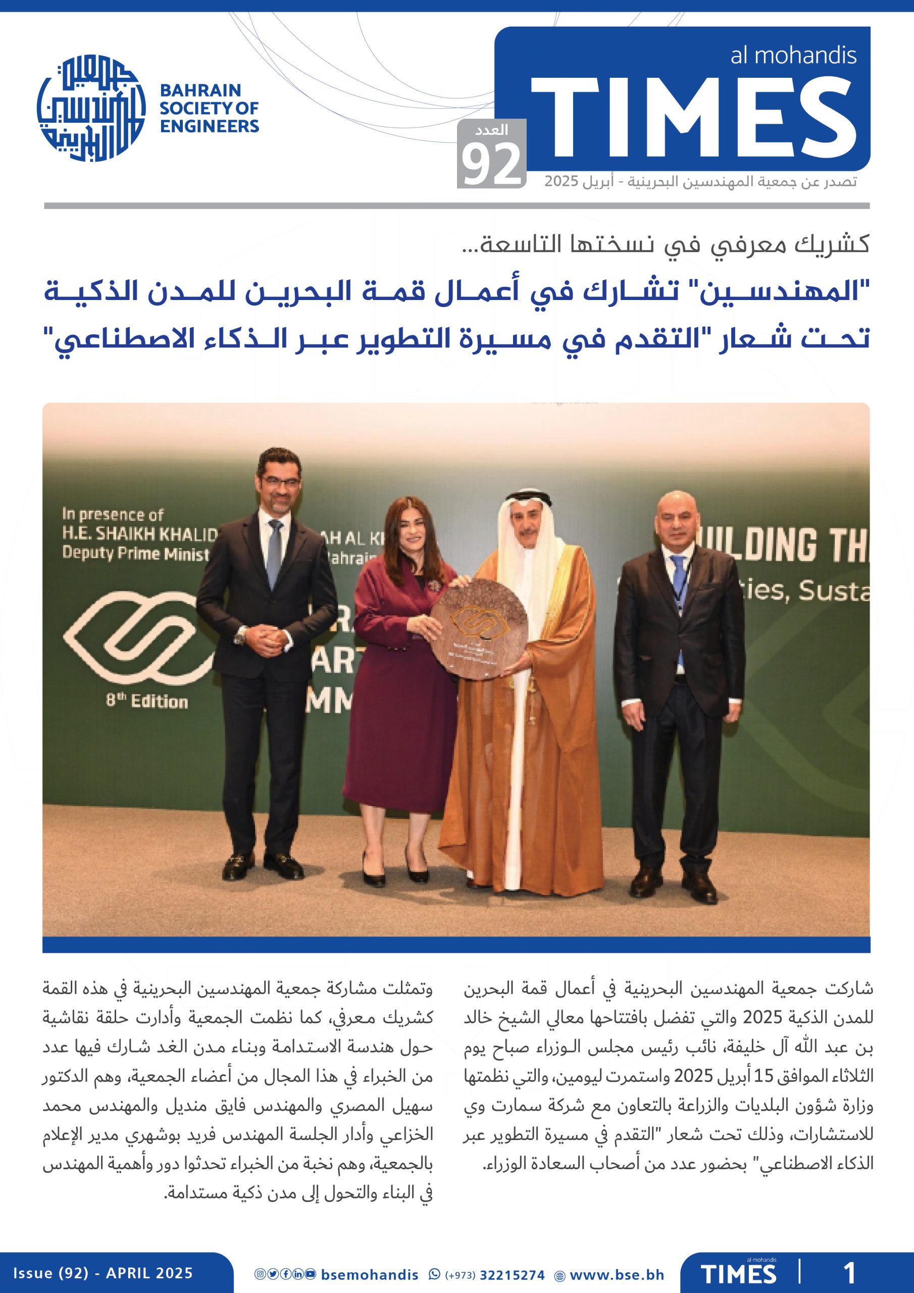 جمعية مهنية تطوعية تعنى بشئون قطاع المهندسين في البحرين وترعى مصالحهم وتسعى لتطوير قدراتهم من خلال برامجها الفنية والاجتماعية.