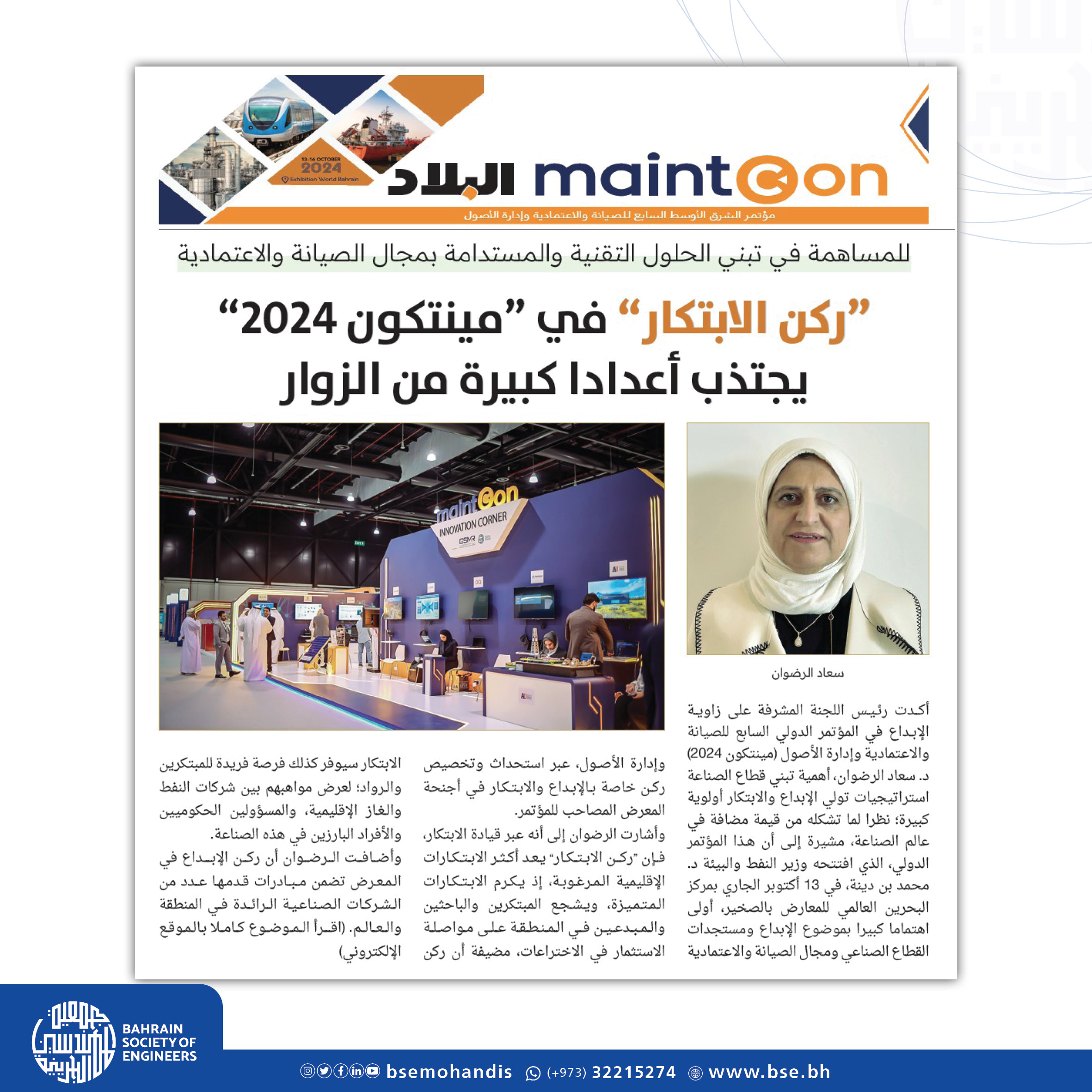 للمساهمة في تبني الحلول التقنية والابتكارية المستدامة في مجال الصيانة والاعتمادية: ركن الابتكار في مينتكون 2024 يجتب أعداداً كبيرة من زوار المعرض المصاحبNews